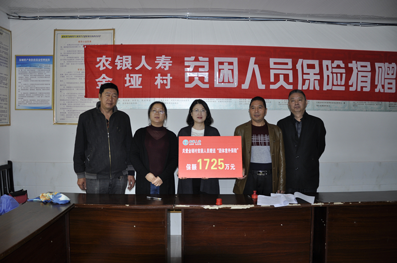 10月17日,适值第四个“国家扶贫日”,农银人寿保险股份有限公司落实2017年“全国保险公众宣传日”保险扶贫项目签约仪式在四川省广安市邻水县长安乡金垭村举行,标志着农银人寿保险扶贫项目正式落地。农银人寿与金垭村民委员会正式签订扶贫合作协议,向该村建档立卡贫困人员捐赠团体意外保险,累计保额达1725.2万元。