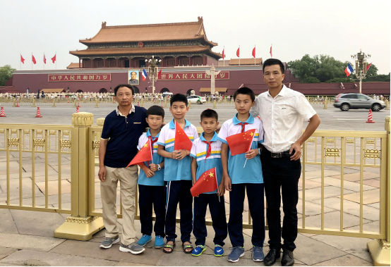 来北京参观游学的农银人寿博爱小学师生在天安门广场。