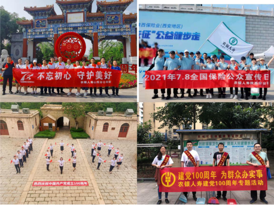 近日,农银人寿2021年“7·8全国保险公众宣传日”活动圆满落幕。活动期间,农银人寿积极响应中保协号召,围绕“不忘初心 守护美好”活动主题,组织开展了一系列宣传教育活动。通过营造良好活动氛围,加强与消费者沟通交流,加深公众对保险的认识,为建党100周年送上美好祝福。