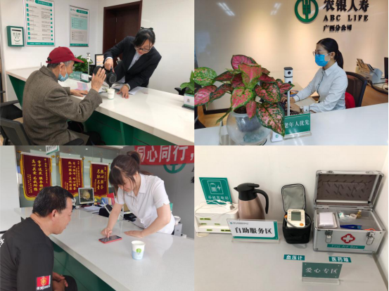 农银人寿积极推进柜面营业网点服务大厅,持续完善老年人服务设施的配置,如老花镜、放大镜、手机充电装置、洗手消毒剂等便民设施摆放在大厅显眼位置;“爱心专座”、“爱心专区”摆放着符合群体特点的教育宣传读物。截至7月8日,农银人寿各机构建设利民便民营业网点244个,紧贴老弱客户等特殊群体需求特点,积极采取有针对性的解决方案,设置专门引导人员,对临柜的老年客户主动提供“一声问候、一个微笑、一杯热水”。与此同时,各分公司妙招频出,如安徽分公司安排专人提供方言讲解服务,让服务不失温度。