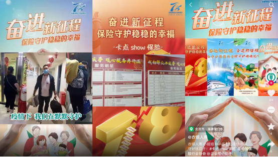 此外,农银人寿特别推出“耕耘未来 臻享精彩”大咖话保险线上宣传活动。为宣传保险理念、保险知识,公司推出“岁岁催人老,规划要趁早”大咖话保险线上宣传活动,邀请保险大咖结合当前热点话题,从风险防范、养老规划等方面,带来不同角度、观念新颖的宣传视频,进一步培养客户健康的保险理念,更加了解保险,了解农银人寿。同时,“农银人寿微文化”及时转发中保协保险小课堂保险知识短视频,通过生动形象的场景、通俗易懂的对话,帮助广大社会公众更加了解保险、认识保险,感受保险守护稳稳的幸福。