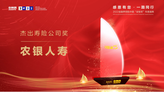 12月30日,由金融界主办的第十一届领航中国年会暨2022领航中国“金智奖”年度评选活动结果揭晓,农银人寿凭借领先的新业务价值率、内含价值、保费继续率等领先指标,荣膺领航中国“2022年度杰出寿险公司”奖项。
