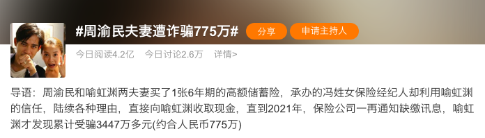 不难看出,“周渝民夫妻受骗”一事的重要环节在于“代缴保费”。