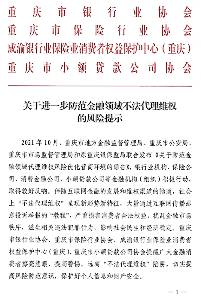 关于进一步防范金融领域不法代理维权的风险提示