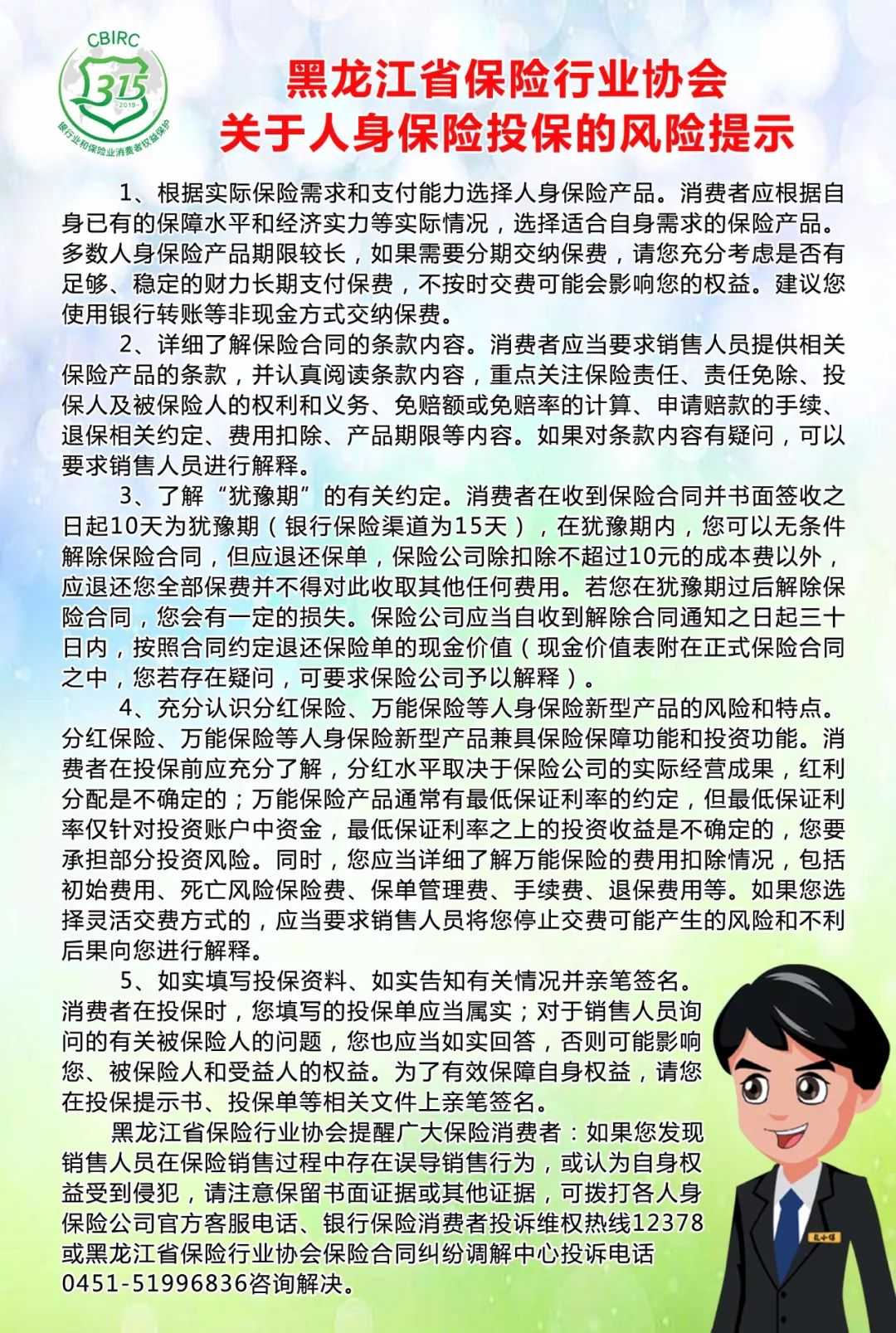 黑龙江省保险行业协会关于人身保险投保的风险提示