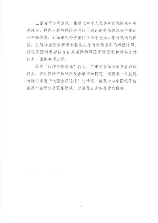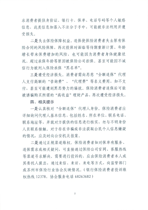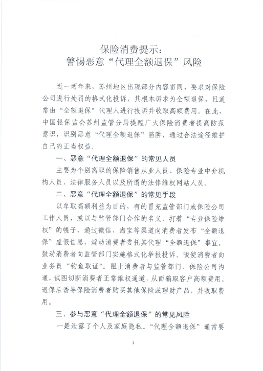 关于警惕恶意“代理全额退保”风险的保险消费提示通知