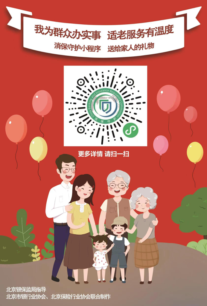 掌握流程、正确理赔,让保险护航老年人的幸福晚年。若有任何涉及理赔事宜的咨询,可致电保险公司客服热线,扫描“消保守护”小程序二维码即可获取保险机构联系方式!